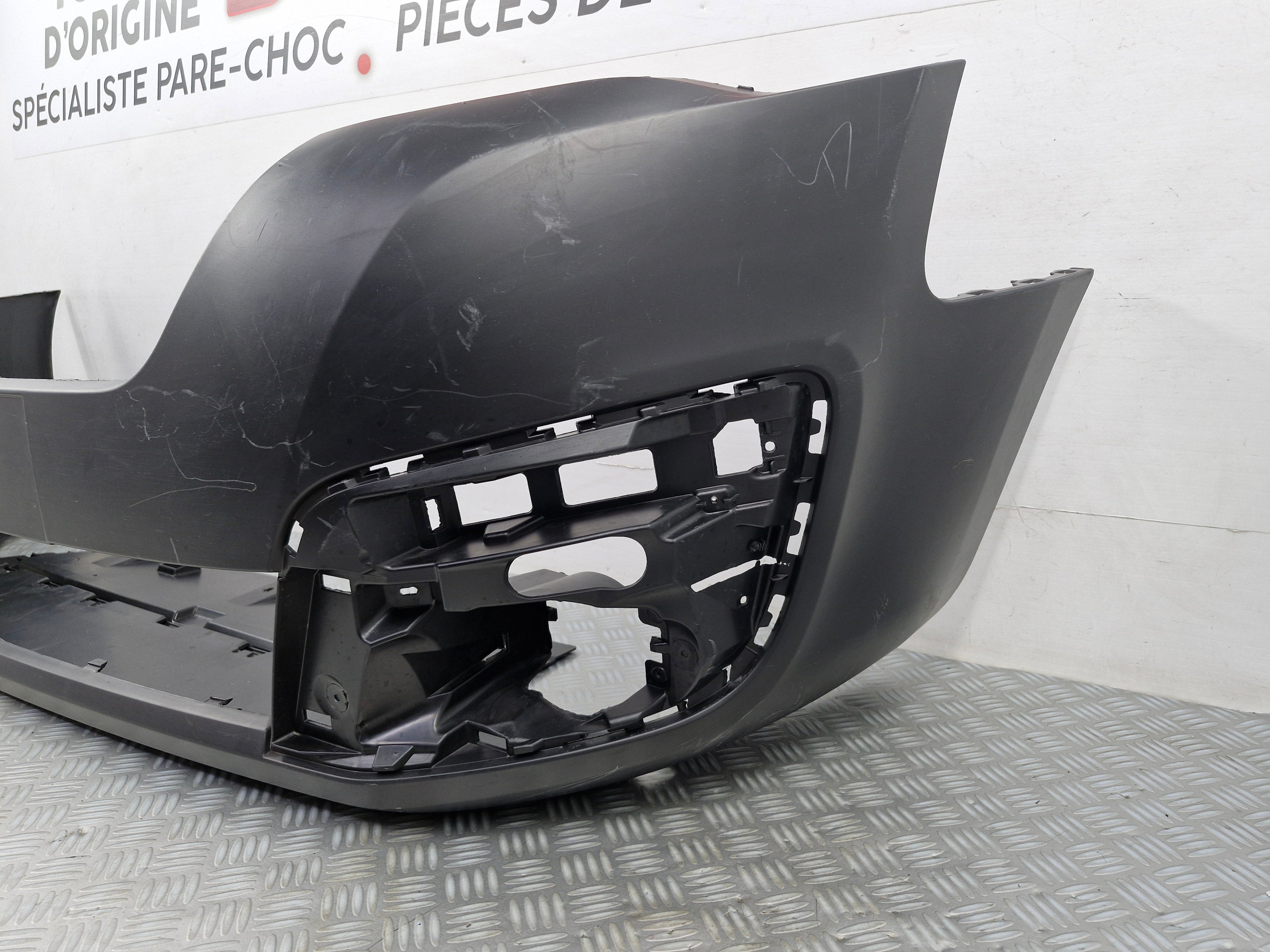 Förutom denna främre stötfångare erbjuder vi ett brett sortiment av fram- och baklyktor, legeringsfälgar, motorhuvar, framskärmar och begagnade dörrar, alla 100 % original från tillverkaren. Lita på vår expertis för att restaurera din Citroën eller Peugeot med högkvalitativa delar.